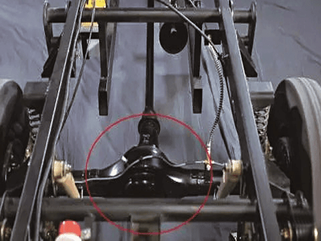 中軸技術(shù)源起何方?萬(wàn)虎工業(yè)為何執(zhí)著開(kāi)發(fā)中軸技術(shù)呢?目前市面上的三輪摩托車(chē)基本以偏軸三輪車(chē)為主,輸出傳動(dòng)軸位置偏向左側(cè),輸出配重難以做到均衡,這對(duì)整車(chē)行駛過(guò)程中的平穩(wěn)性和舒適性提出很高的要求,甚至?xí)绊懙睫D(zhuǎn)彎時(shí)的安全性。其實(shí)軸傳動(dòng)輸出的問(wèn)題早已在汽車(chē)行業(yè)解決,那就是發(fā)動(dòng)機(jī)動(dòng)力輸出,后橋1:1配置,于是萬(wàn)虎工業(yè)率先提出在三輪摩托車(chē)使用中軸的概念,并利用自身的研發(fā)優(yōu)勢(shì)付之為現(xiàn)實(shí)。如圖所示: